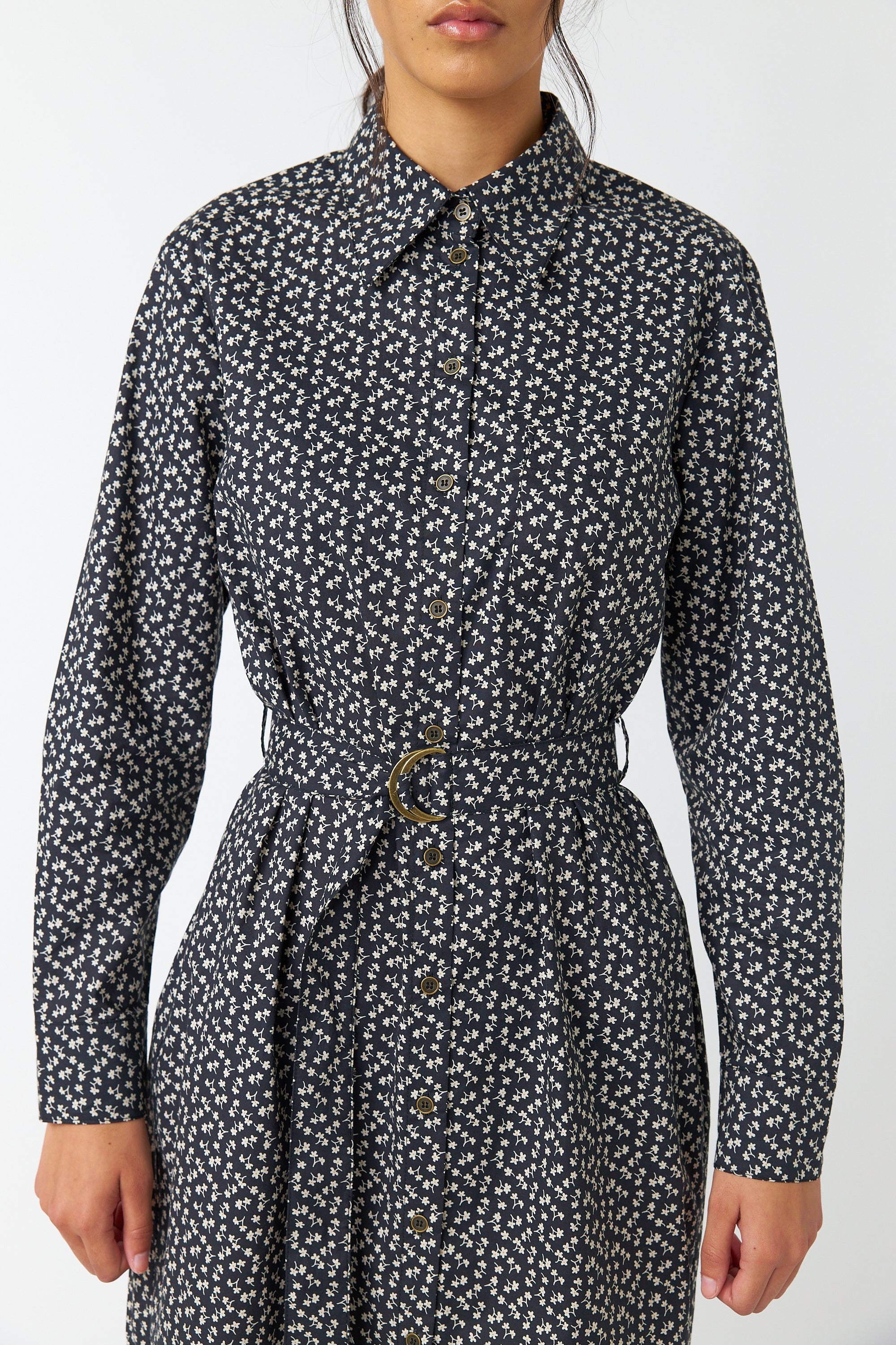 Our Dimity shirt dress buttons through to just below the knee. It features a classic fold down collar and a d-ring belt to cinch in the waist. The full length cuffed sleeves look great rolled back to elbow. Complete the look with our .Nevaeh is 5'8 and wears size 8.