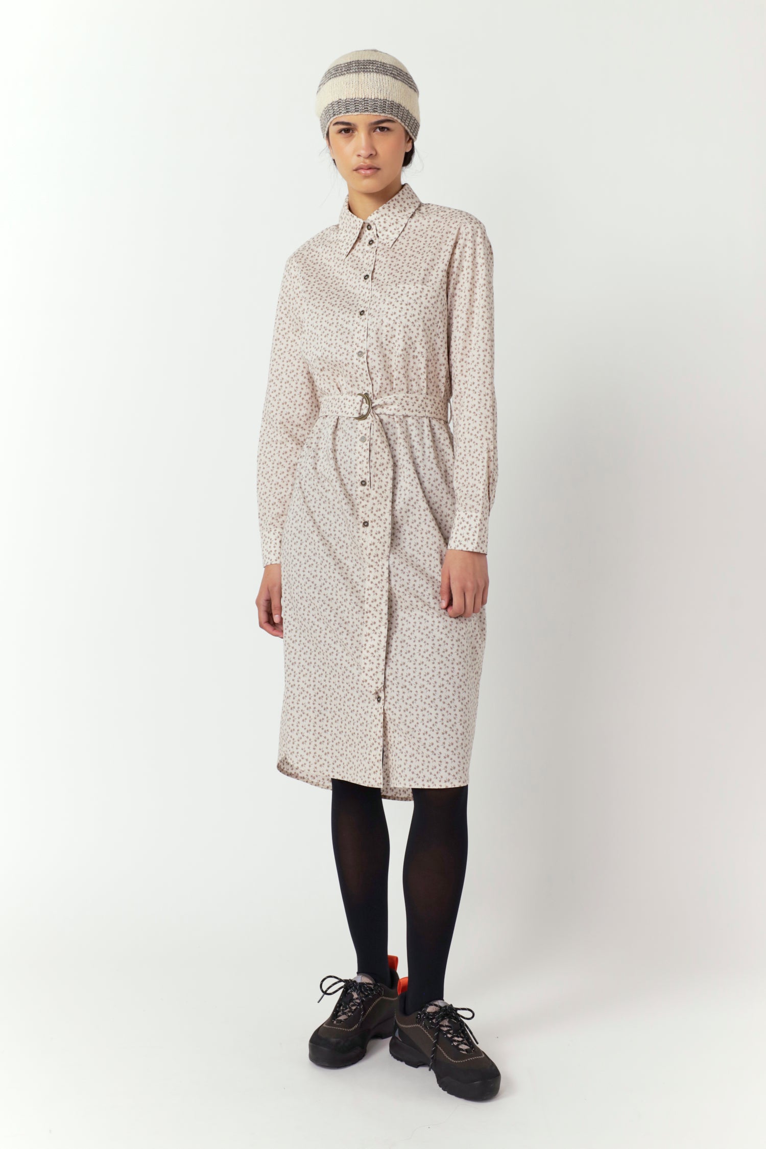 Our Dimity shirt dress buttons through to just below the knee. It features a classic fold-down collar and a d-ring belt to cinch in the waist. The full-length cuffed sleeves look great rolled back to the elbow. Complete the look with our or .Lola is 5'7 and wears size 8.