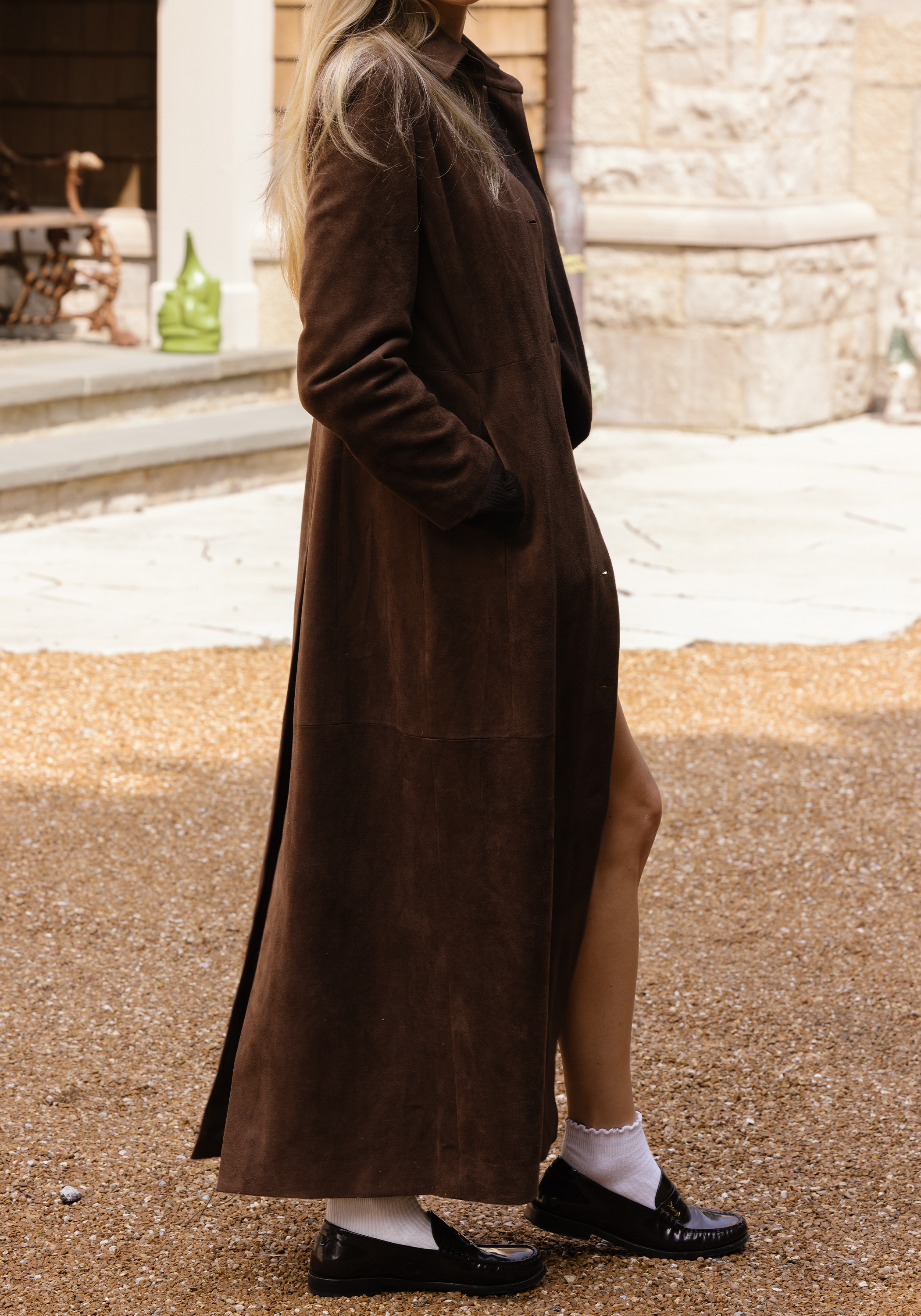 Introducing the Dante Coat, crafted from luxurious vegan brown suede that offers an exceptionally soft feel. Designed with a slim, tailored fit, this coat delivers refined sophistication and modern elegance, making it a versatile addition to any wardrobe. Its premium material and sharp silhouette ensure both comfort and style throughout the seasons.