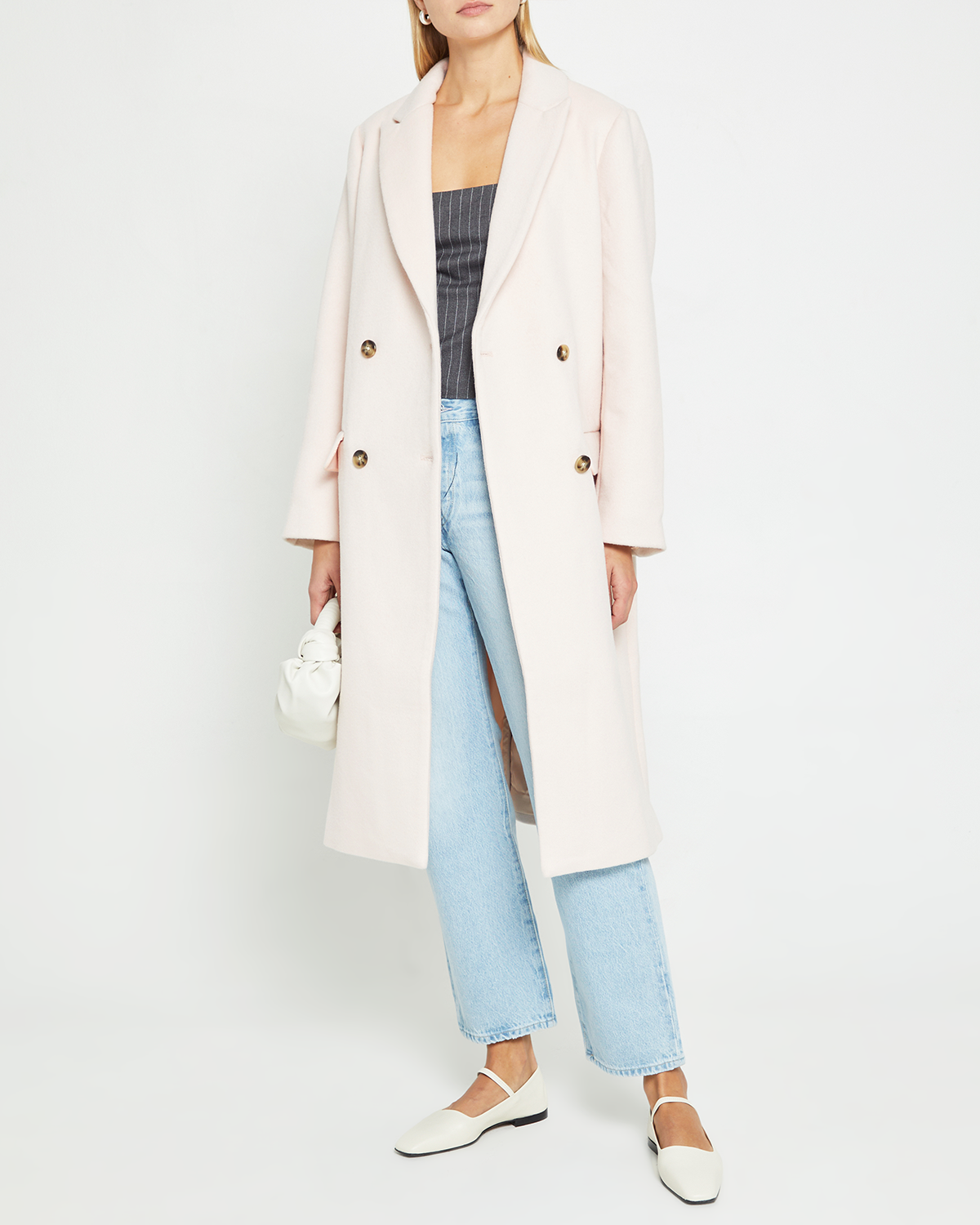 The Frank Coat is designed to keep you warm all winter. This thick wool blend coat is perfect for brisk days, while the classic double-breasted design and button details make it a timeless staple piece.