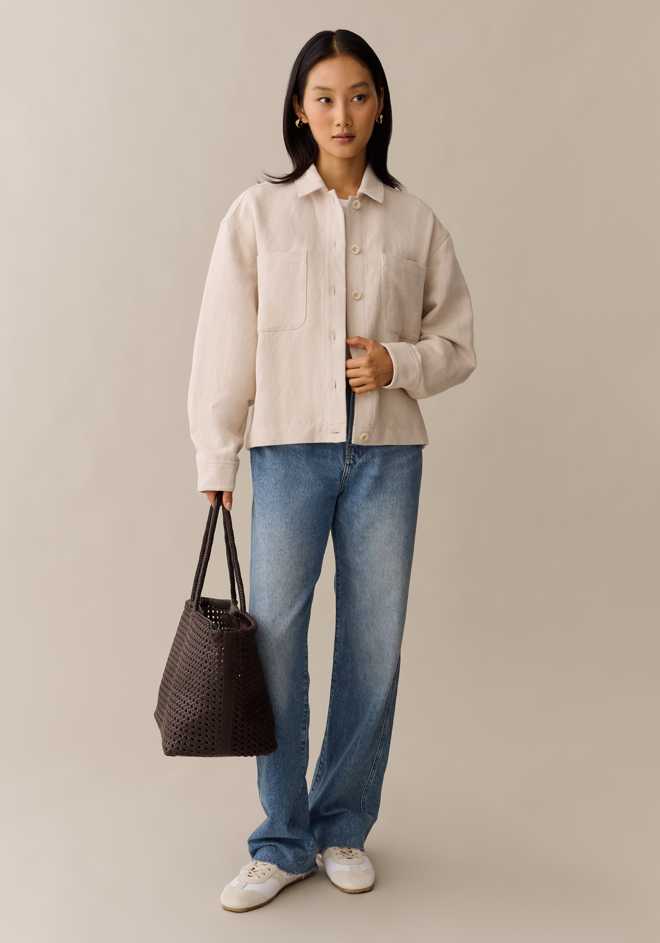 The Petra Jacket is crafted from a cool, canvas-like fabric that offers durability with a stylish finish. Featuring a classic collared design and button closures, this lightweight layer is perfect for easy, everyday wear.